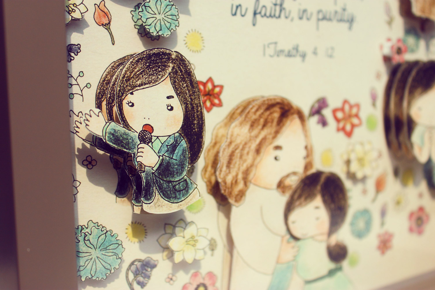 Graduation is one of the proudest moment in our life. We finally accomplish a degree, after years of learning. Ms. Claudia just got her master degree at Theology, and a dear friend of her asked us to design a memorable gift for her graduation day. At first we didn’t know what to make. But after a brainstorming session, we finally decided to make an illustration and very simple papertole with it, equipped with a card and packaging. The illustration itself tells everything about what Ms. Claudia did, do, and will do for the rest of her life.